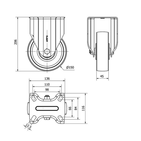 Rueda nylon-poliamida fija Alex diametro 150 mm. modelo 2-0218
