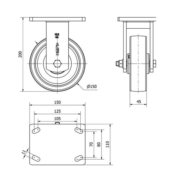 Rueda nylon-poliamida fija Alex diametro 150 mm. modelo 2-0476