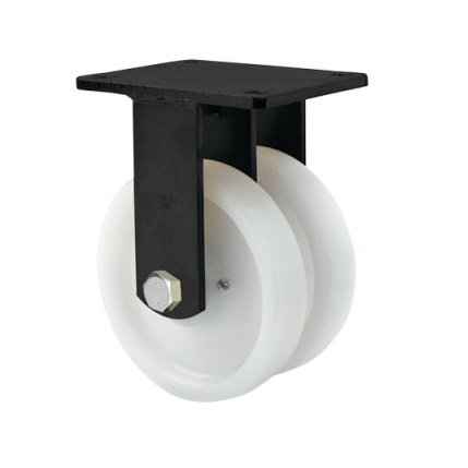 Las ruedas Alex serie HLG-FT son ruedas dobles de nylon extrafuerte, indicadas para soportar altas cargas hasta 2.500 Kg. Se utilizan en útiles de transporte logístico, grúas que transportan materiales pesados, así como plataformas elevadoras y gradas móviles, principalmente en el sector aeronáutico, ferroviario y automoción. FT: Ruedas especialmente indicadas para aplicaciones en industrias alimentarias y químicas. No manchan el suelo. Extrafuertes. Alta resistencia a golpes y choques.