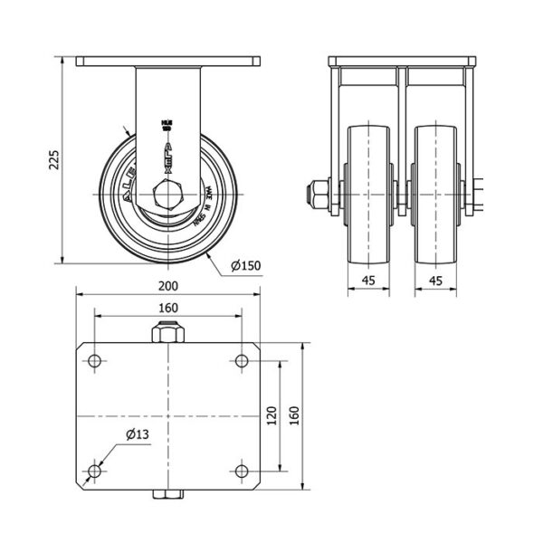 Rueda nylon-poliamida fija Alex diametro 150 mm. modelo 2-1878