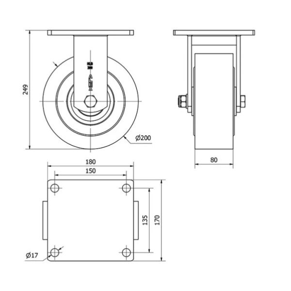 Rueda nylon-poliamida fija Alex diametro 200 mm. 2-0112