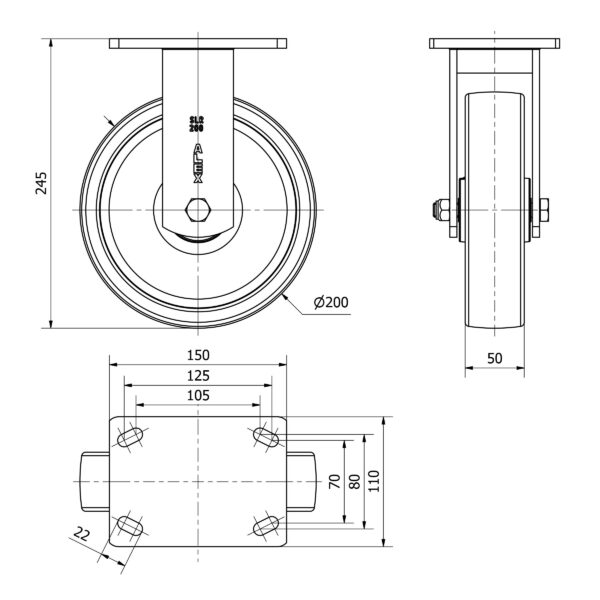 Rueda nylon-poliamida fija Alex diametro 200 mm. modelo 2-3675