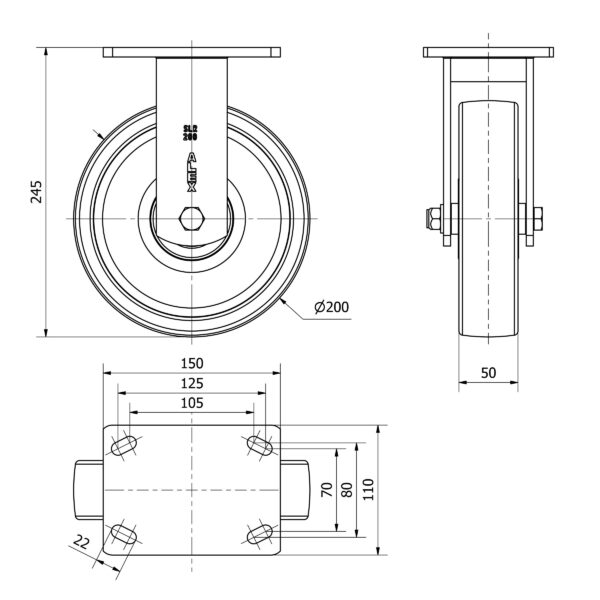 Rueda nylon-poliamida fija Alex diametro 200 mm. modelo 2-3676