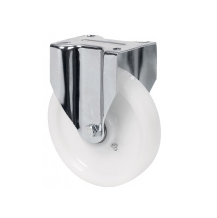 La serie de ruedas Alex ZVR-FT son de nylon extrafuerte, indicadas para soportar cargas hasta 700 Kg. Se utilizan en útiles de transporte logístico, carros de herramientas, gradas móviles, útiles de transporte, plataformas elevadoras y empresas de alimentación. FT: Ruedas especialmente indicadas para aplicaciones en industrias alimentarias y químicas. No manchan el suelo. Extrafuertes. Alta resistencia a golpes y choques.