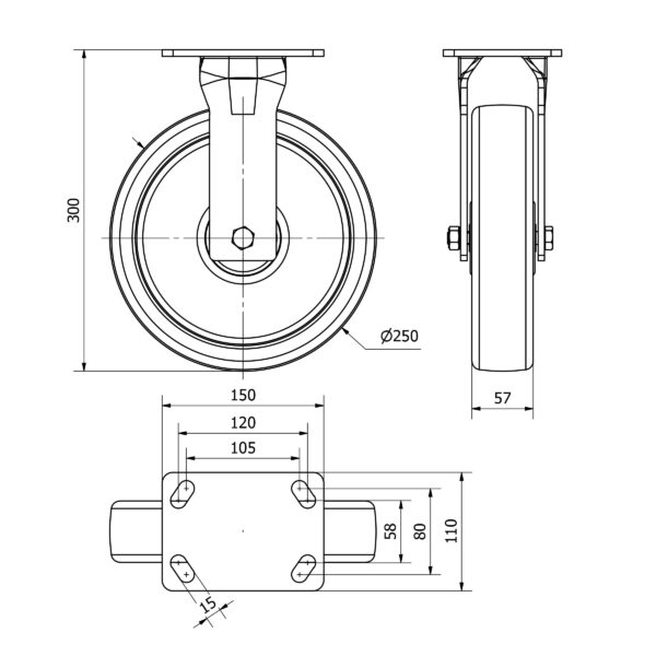 Rueda nylon-poliamida fija Alex diametro 250 mm. modelo 4-0168