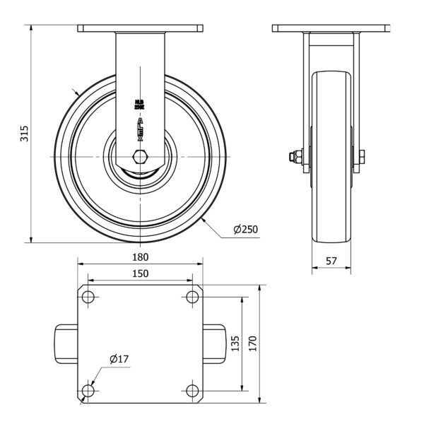Rueda nylon-poliamida fija Alex diametro 250 mm. modelo 4-1065