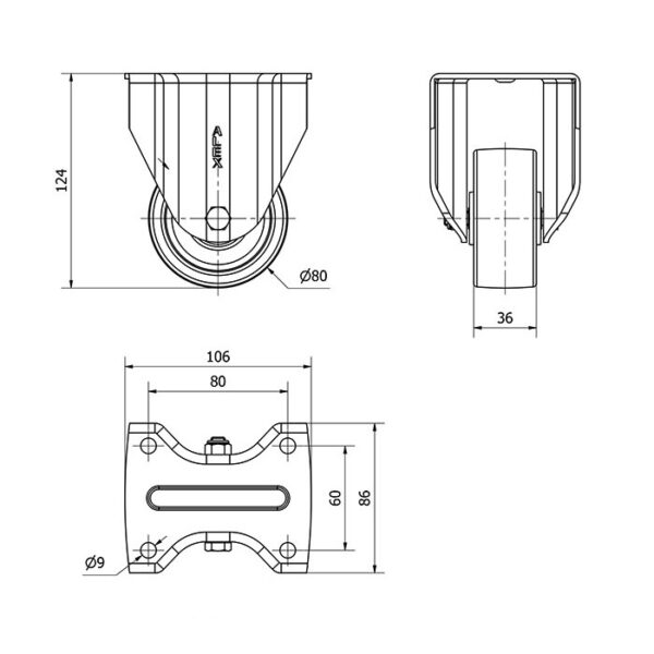 Rueda nylon-poliamida fija Alex diametro 80 mm. modelo 2-1808