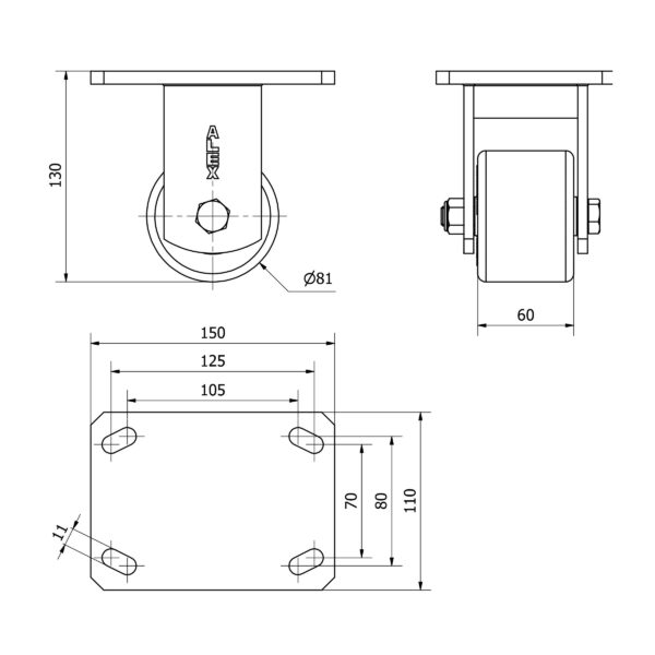 Rueda nylon-poliamida fija Alex diametro 82 mm. modelo 2-3997