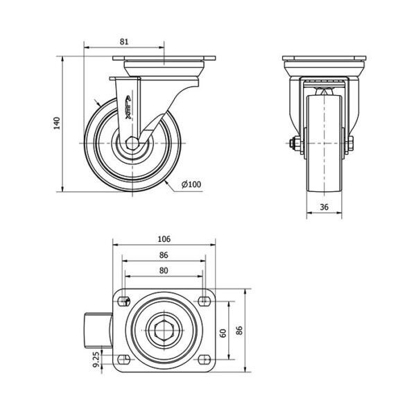 Rueda nylon-poliamida giratoria Alex diametro 100 mm. 2-1798
