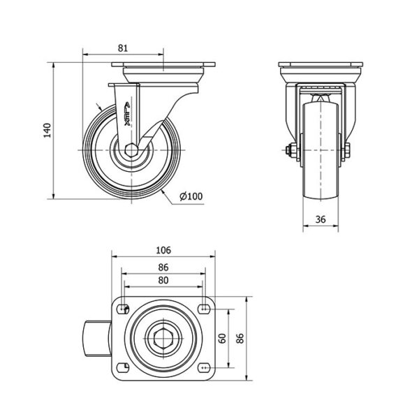 Rueda nylon-poliamida giratoria Alex diametro 100 mm. modelo 2-0213 EAN 8422202202136