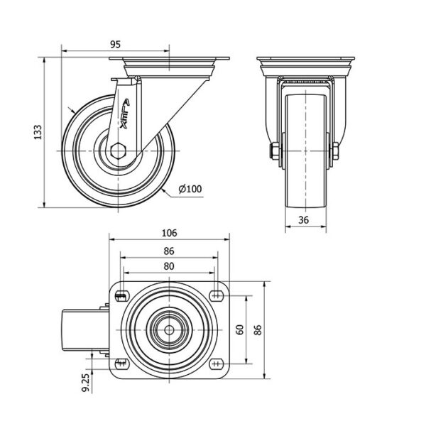 Rueda nylon-poliamida giratoria Alex diametro 100 mm. modelo 2-2684