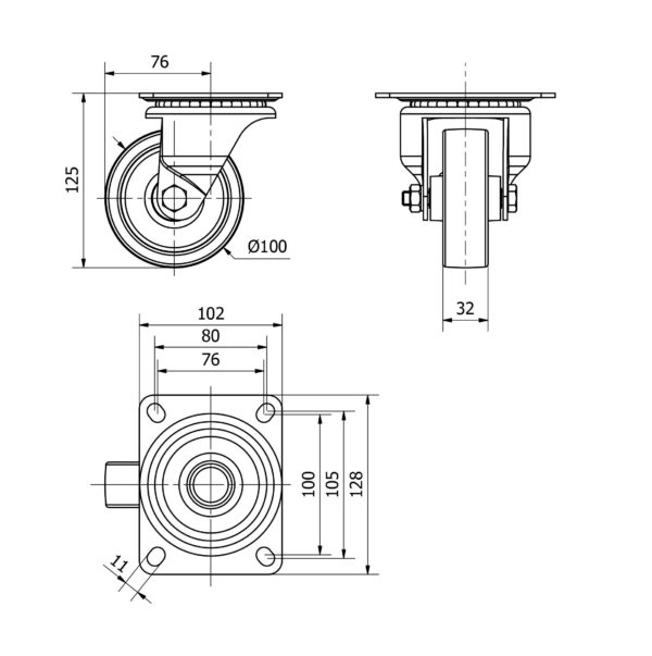 Rueda nylon-poliamida giratoria Alex diametro 100 mm. modelo 4-0099