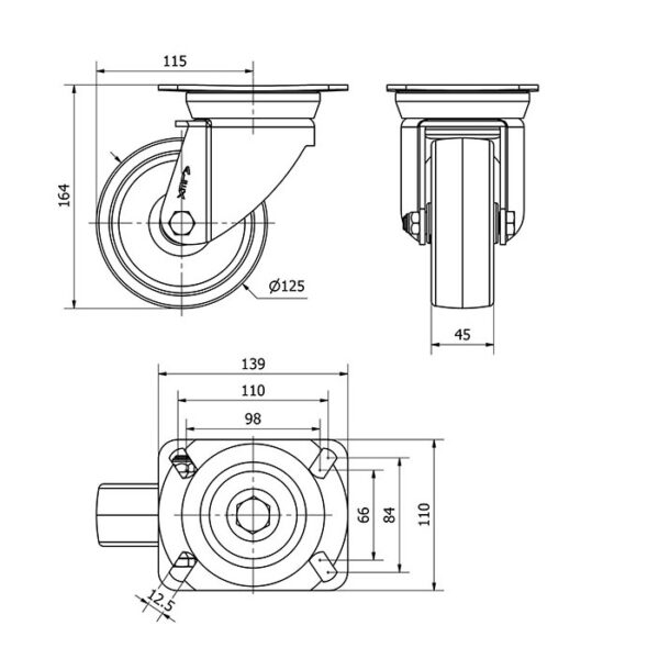 Rueda nylon-poliamida giratoria Alex diametro 125 mm. 2-0021 EAN 8422202200217