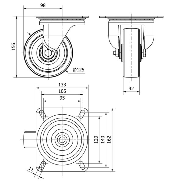 Rueda nylon-poliamida giratoria Alex diametro 125 mm. modelo 4-0101 EAN 8422202401010