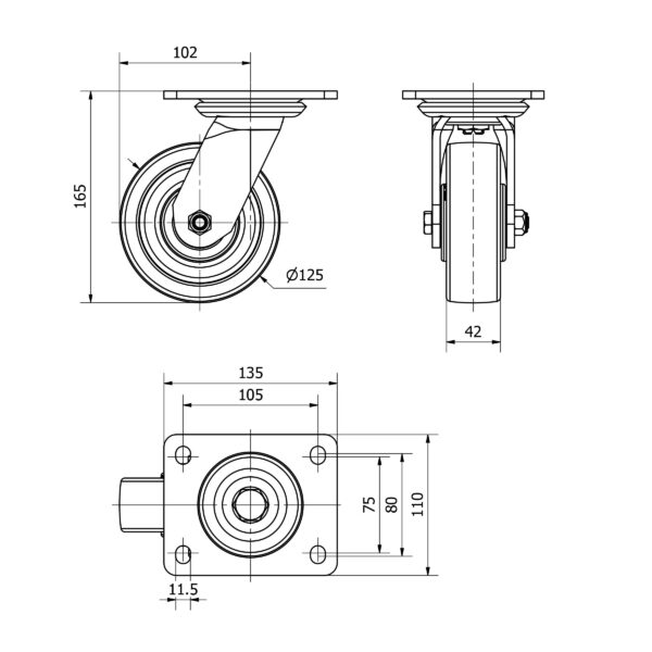 Rueda nylon-poliamida giratoria Alex diametro 125 mm. modelo 4-0793 EAN 8422202407937