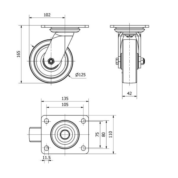 Rueda nylon-poliamida giratoria Alex diametro 125 mm. modelo 4-0813