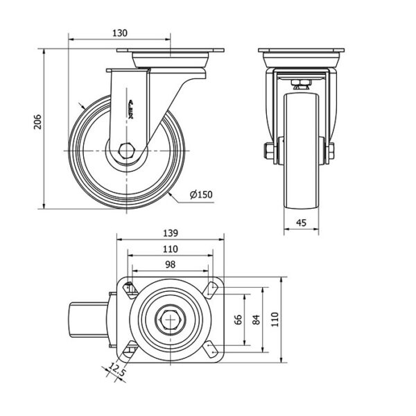 Rueda nylon-poliamida giratoria Alex diametro 150 mm. 2-0022 EAN 8422202200224