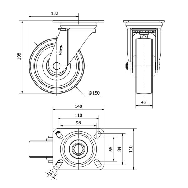Rueda nylon-poliamida giratoria Alex diametro 150 mm. modelo 2-3873 EAN 8422202238739