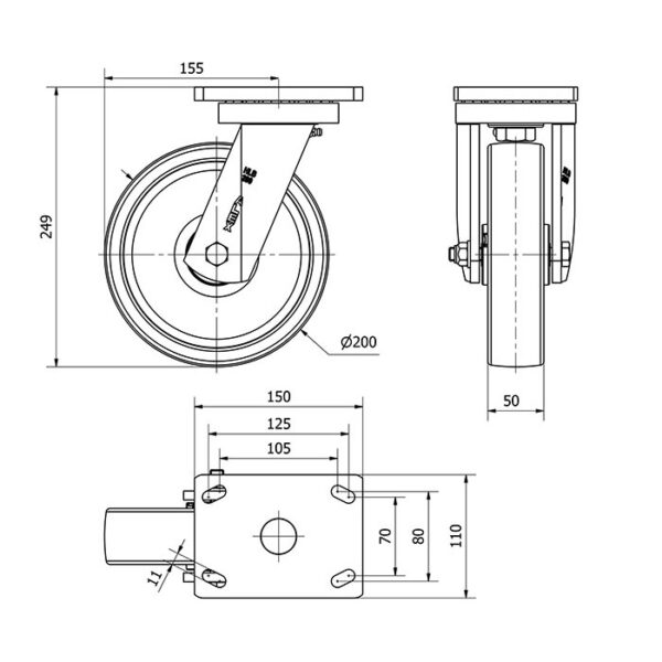 Rueda nylon-poliamida giratoria Alex diametro 200 mm. 2-0469