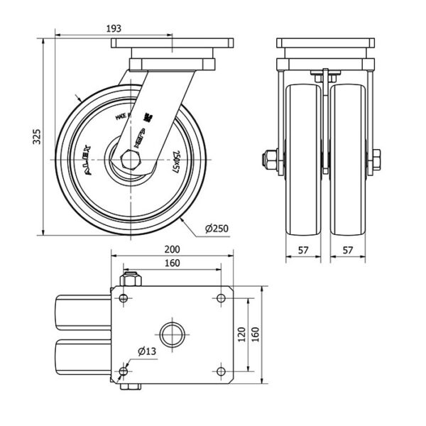 Rueda nylon-poliamida giratoria Alex diametro 250 mm. modelo 2-1875