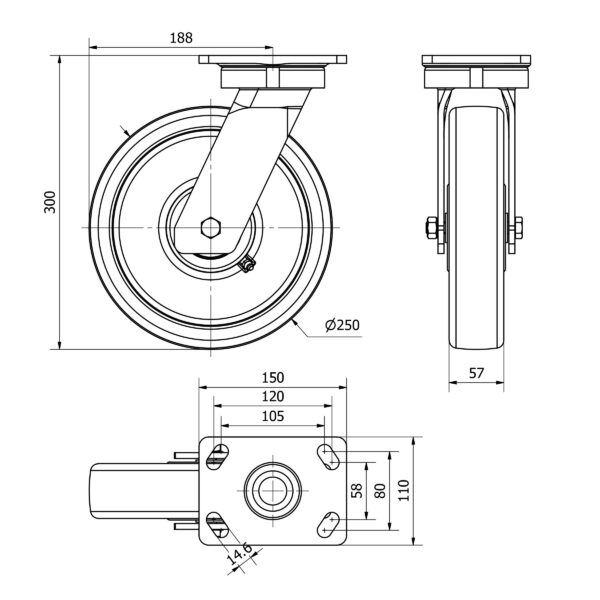 Rueda nylon-poliamida giratoria Alex diametro 250 mm. modelo 4-0148