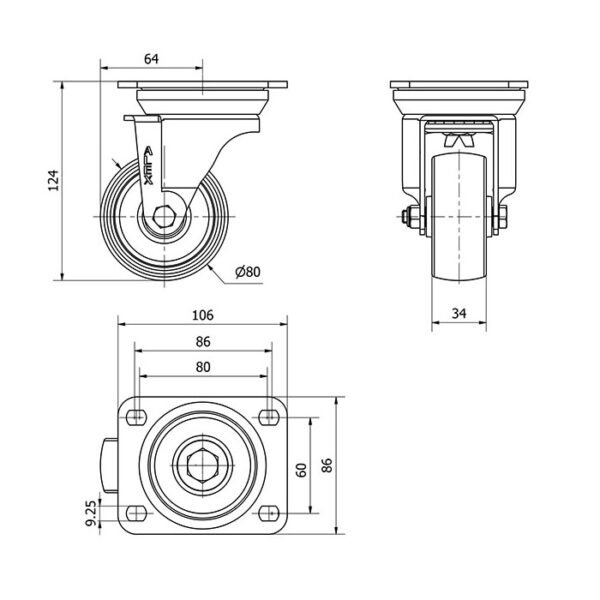 Rueda nylon-poliamida giratoria Alex diametro 80 mm. modelo 2-0019 EAN 8422202200194