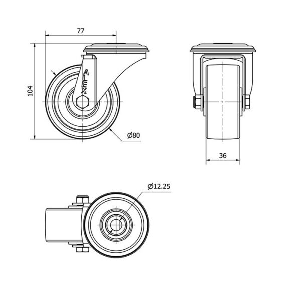 Rueda nylon-poliamida giratoria Alex diametro 80 mm. modelo 2-4154