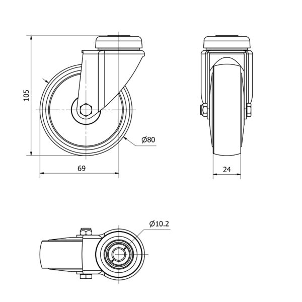 Rueda nylon-poliamida giratoria Alex diametro 80 mm. TW0099