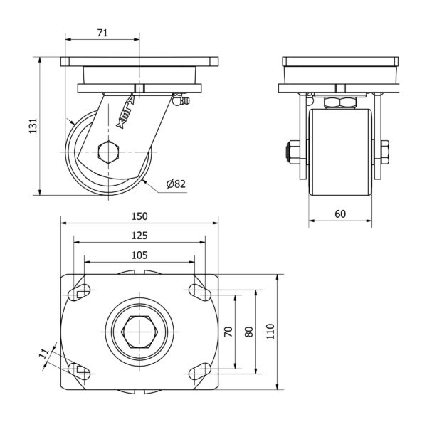 Rueda nylon-poliamida giratoria Alex diametro 82 mm. modelo 2-3995