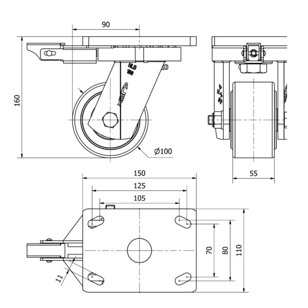 Rueda nylon-poliamida giratoria con bloqueo direccional Alex diametro 100 mm. modelo 2-4487