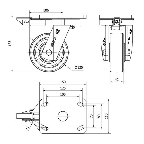 Rueda nylon-poliamida giratoria con bloqueo direccional Alex diametro 125 mm. modelo 2-3378