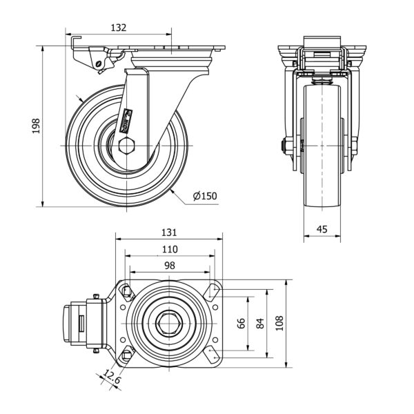 Rueda nylon-poliamida giratoria con bloqueo direccional Alex diametro 150 mm. modelo 2-3884 EAN 8422202238845