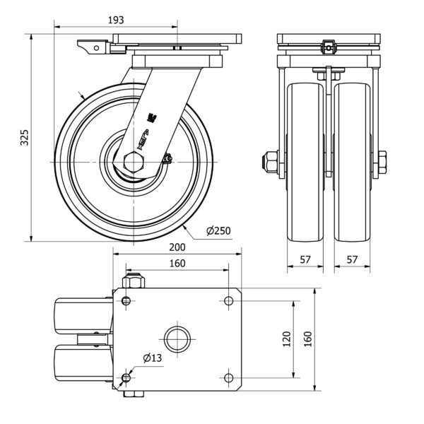 Las ruedas Alex serie HLG-FT son ruedas dobles de nylon extrafuerte, indicadas para soportar altas cargas hasta 2.500 Kg. Se utilizan en útiles de transporte logístico, grúas que transportan materiales pesados, así como plataformas elevadoras y gradas móviles, principalmente en el sector aeronáutico, ferroviario y automoción. FT: Ruedas especialmente indicadas para aplicaciones en industrias alimentarias y químicas. No manchan el suelo. Extrafuertes. Alta resistencia a golpes y choques.