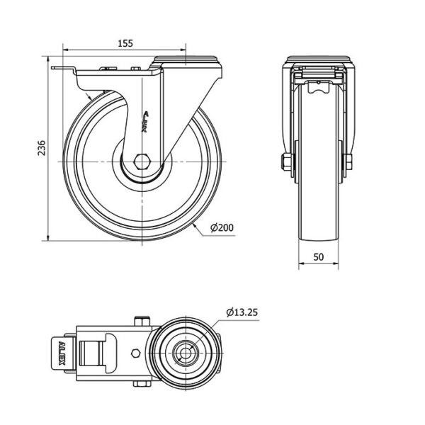 Rueda nylon-poliamida giratoria con freno Alex diametro 200 mm. 2-2711