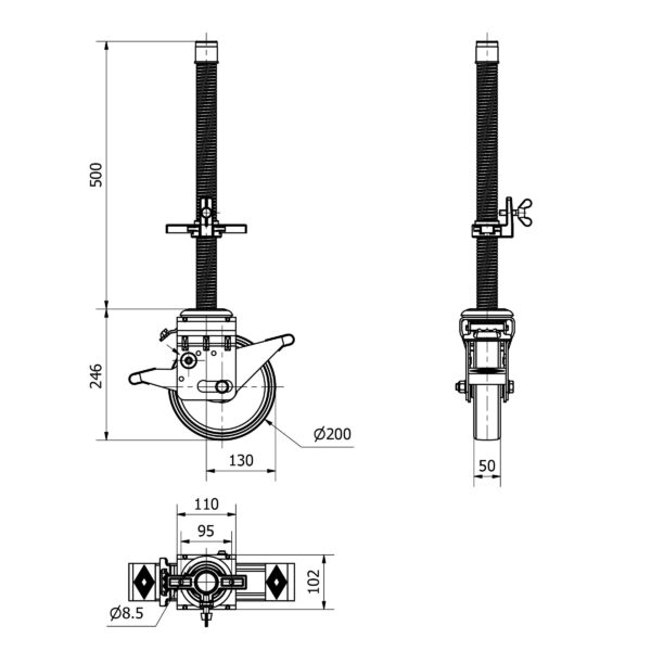 Rueda nylon-poliamida giratoria con freno Alex diametro 200 mm. 2-3787