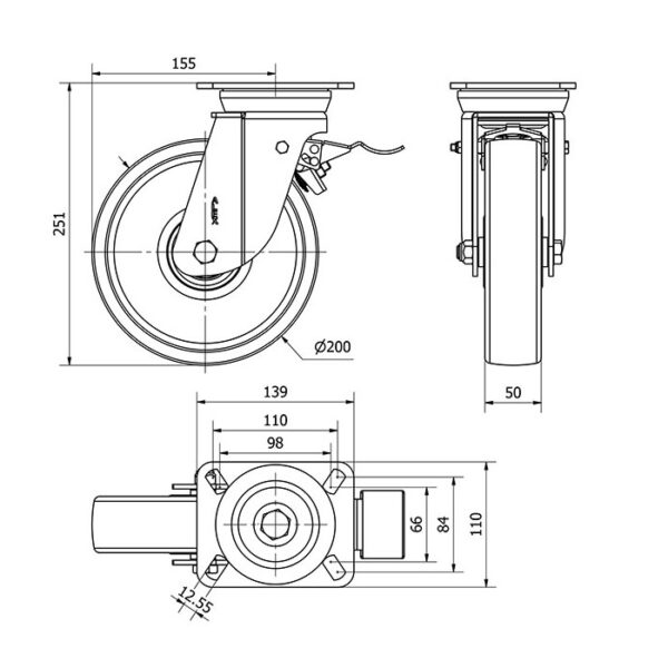 Rueda nylon-poliamida giratoria con freno Alex diametro 200 mm. modelo 2-0948