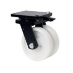 Rueda nylon-poliamida giratoria con freno Alex diametro 250 mm. modelo 2-3818 EAN 8422202238180 n nHOJA TECNICA n nLas ruedas Alex serie HLG-FT son ruedas dobles de nylon extrafuerte, indicadas para soportar altas cargas hasta 2.500 Kg. Se utilizan en útiles de transporte logístico, grúas que transportan materiales pesados, así como plataformas elevadoras y gradas móviles, principalmente en el sector aeronáutico, ferroviario y automoción. FT: Ruedas especialmente indicadas para aplicaciones en industrias alimentarias y químicas. No manchan el suelo. Extrafuertes. Alta resistencia a golpes y choques.