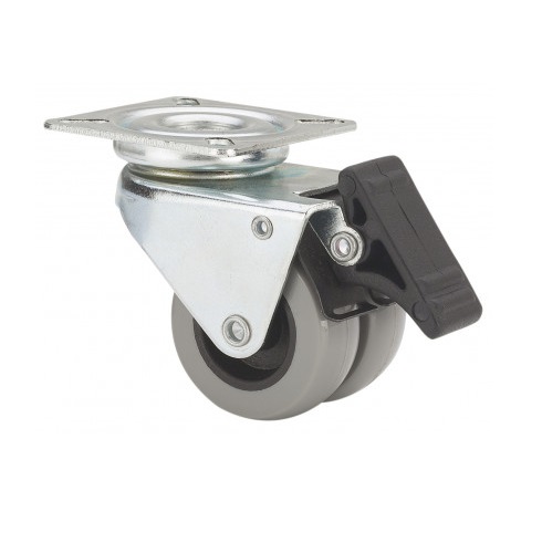 La serie de ruedas Alex Twin Lex serie 411 son ruedas dobles de poliamida gris, indicadas para soportar cargas de hasta 80 Kg. Se utilizan en cámaras frigoríficas, mostradores, máquinas asadoras de pollos, librerías, oficinas, tiendas de moda, tiendas de bricolaje, tiendas de moda, arcones, lavanderías, carros de archivo, contenedores de destrucción de documentos, interiores de tienda, mostradores y cámaras frigoríficas.. TWIN-LEX 410: Robustas, silenciosas, no rallan el suelo y no dejan huella.