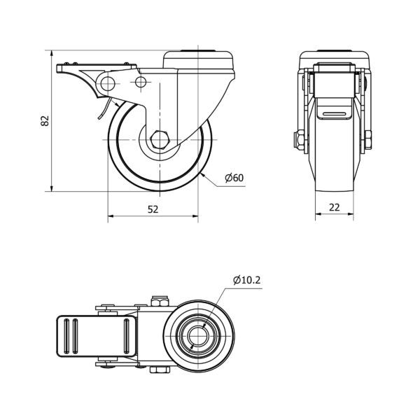 Rueda nylon-poliamida giratoria con freno Alex diametro 60 mm. modelo TW0145