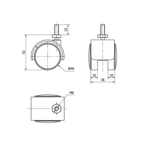 Rueda poliamida giratoria Alex diametro 40 mm. modelo 1-0240