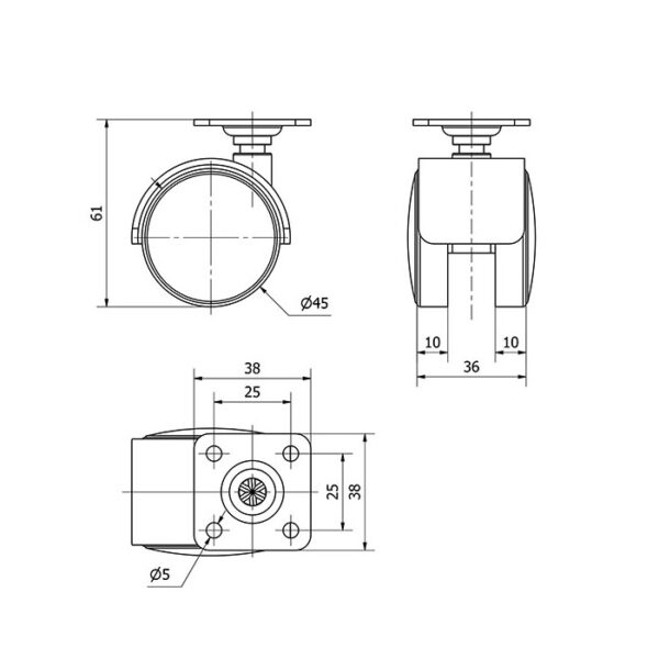 Rueda poliamida giratoria Alex diametro 45 mm. modelo 1-0241