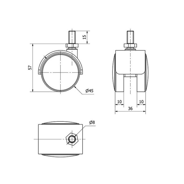 Rueda poliamida giratoria Alex diametro 45 mm. modelo 1-0242