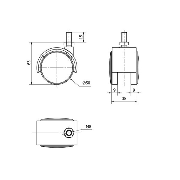 Rueda poliamida giratoria Alex diametro 50 mm. 1-0125