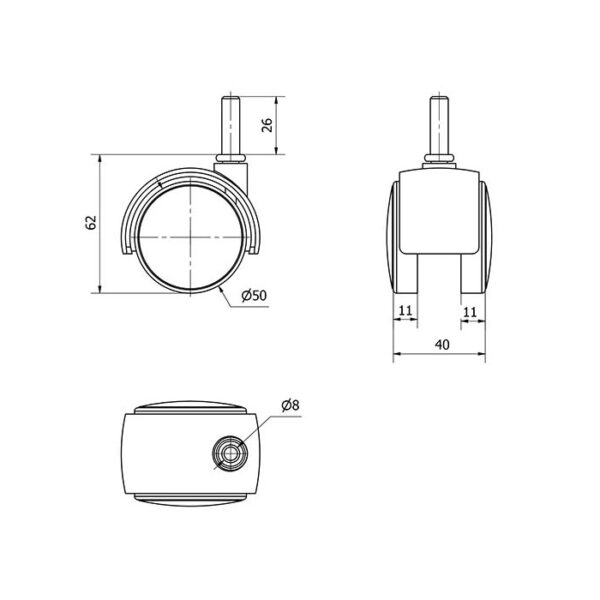 Rueda poliamida giratoria Alex diametro 50 mm. modelo 1-0130