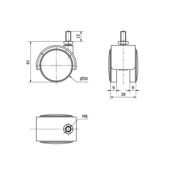 Rueda poliamida giratoria Alex diametro 50 mm. modelo 1-0410