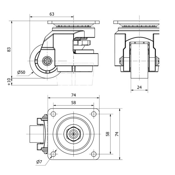 Las ruedas Alex serie FM son ruedas de poliamida negra, indicadas para soportar altas cargas hasta 1.500 Kg. Se utilizan en el sector industrial y están especialmente diseñadas para pequeños desplazamientos de maquinaria voluminosa. Se pueden nivelar hasta 15 mm.