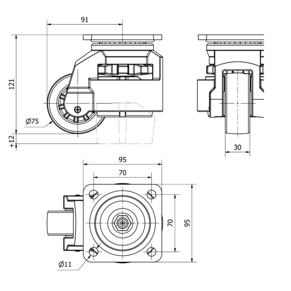 Rueda poliamida giratoria Alex diametro 75 mm. modelo 2-4558