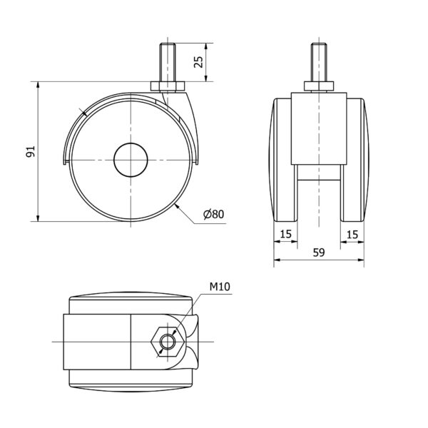 Rueda poliamida giratoria Alex diametro 80 mm. modelo 4-1322
