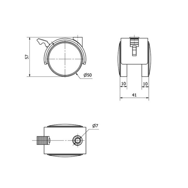 Rueda poliamida giratoria con freno Alex diametro 50 mm. 1-0119