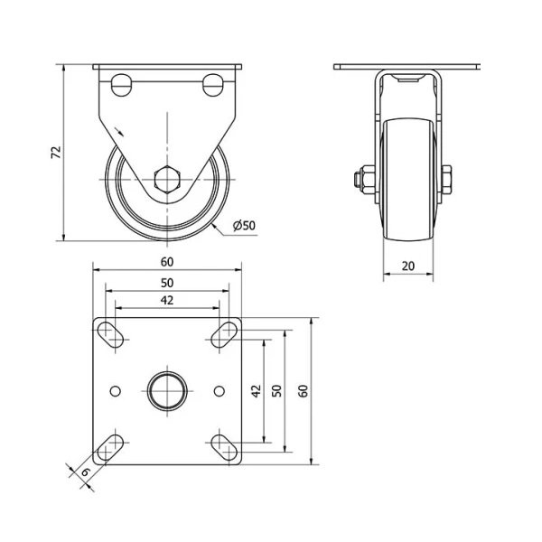 Rueda poliamida negra fija Alex diametro 50 mm. TW0316
